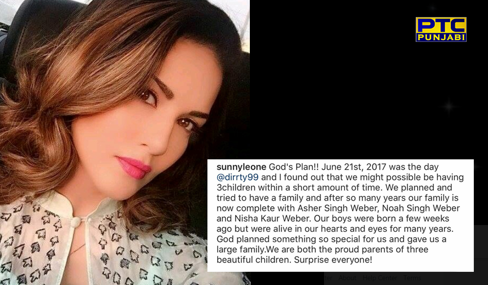 They both took their social media accounts to make this announcement publically. Sunny tweeted, “God’s Plan!! June 21st 2017 was the day @dirty99 and I found out that we might possible be having 3 children within a short amount of time. We planned and tried to have a family and after so many years our family is now complete with Asher Singh Weber, Noah Singh Weber and Nisha Kaur Weber. Our boys were born a few weeks ago but were alive in our hearts and eyes for many years. God planned something so special for us and gave us a large family. We are both the proud parents of three beautiful children. Surprise everyone!”. She shared the picture of her full family for her fans.