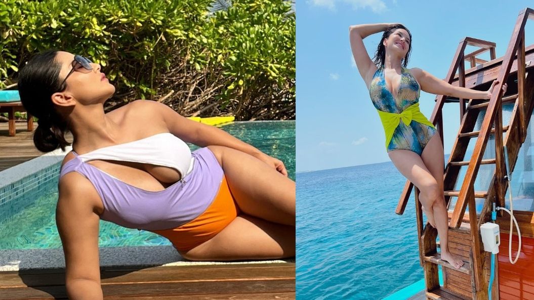 Sunny leone has dropped a series of photos on her official Instagram account, in which she is wearing colourful monokinis and bikini in the Maldives. In one of the pictures, she can be seen posing beside a pool.