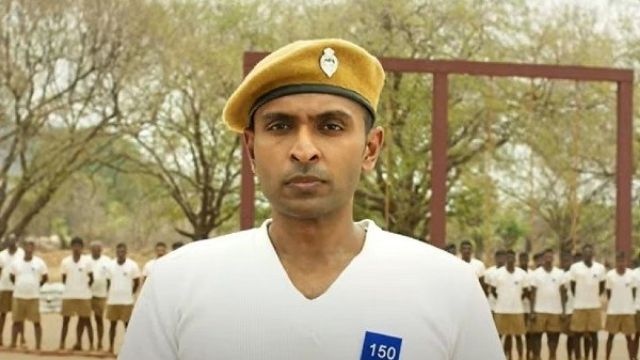 Vikram is playing the role of an aggressive trainee who questions his senior officers who are very rude during the training sessions.