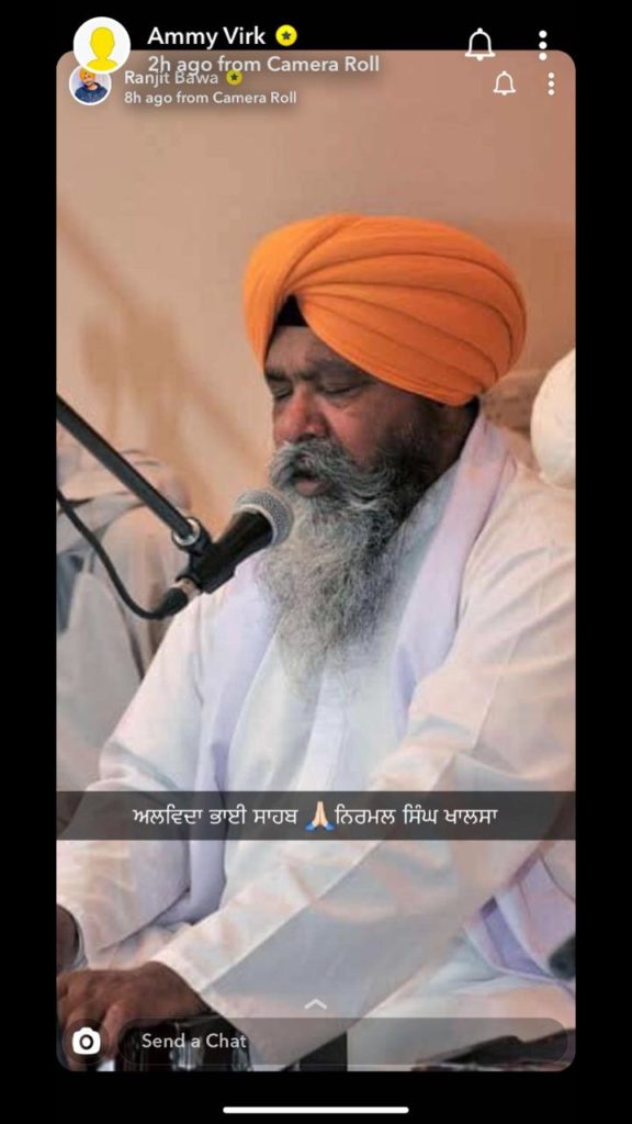 Top singers of our musical industry have mourned over his death. Gurdas Mann, a legendary singer has posted a picture along with raagi ji with an emotional caption. He expressed his grief and told the world how it is a great loss to us. He told how Nirmal Ji never thought about casteism and always loved everyone.
