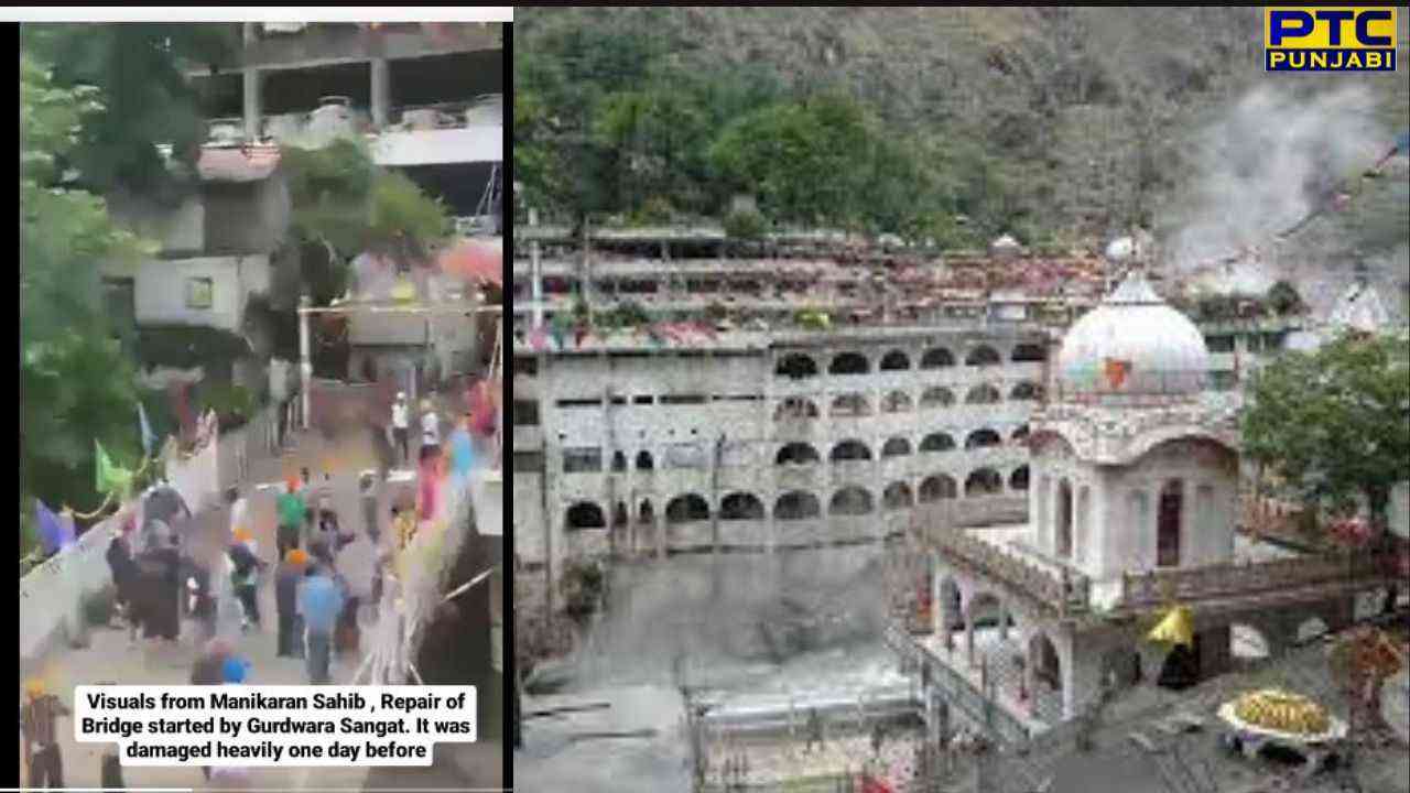 Sikh devotees rebuild a broken bridge and Langar sewa at shri Manikaran Sahib: ਹਿਮਾਚਲ ਪ੍ਰਦੇਸ਼ 'ਚ ਇਨ੍ਹੀਂ ਦਿਨੀਂ ਲੋਕ ਹੜ੍ਹ ਦੇ ਕਾਰਨ ਬੇਹੱਦ ਪਰੇਸ਼ਾਨ ਹਨ। ਹਿਮਾਚਲ ਪ੍ਰਦੇਸ਼ 'ਚ ਹੜ੍ਹ ਕਾਰਨ ਭਾਰੀ ਤਬਾਹੀ ਤੇ ਜਾਨੀ ਮਾਲੀ ਨੁਕਾਸਾਨ ਹੋਇਆ ਹੈ। ਹਿਮਾਚਲ ਪ੍ਰਦੇਸ਼ 'ਚ ਪਾਰਵਤੀ ਨਦੀ 'ਚ ਪਾਣੀ ਦੇ ਭਾਰੀ ਬਹਾਅ ਕਾਰਨ ਗੁਰਦੁਆਰਾ ਸ੍ਰੀ ਮਨੀਕਰਨ ਸਾਹਿਬ ਅਤੇ ਸ਼ਿਵ ਮੰਦਰ ਨੂੰ ਜੋੜਨ ਵਾਲਾ ਪੁਲ ਨੁਕਸਾਨਿਆ ਗਿਆ।