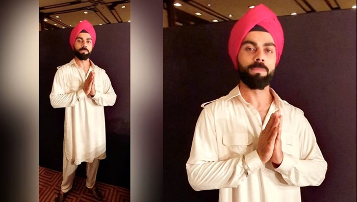 Virat took to his social media accounts to share a picture of himself donning a pathani suit with pink turban. He captioned the image as: "Sat Shri Akal saarreyaan nu! ??."
