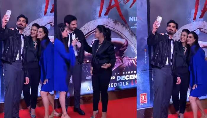A video is being surfaced on the internet which showcases how Kajol refers to Ahan Shetty as 'Gadha' as she asks him to click pictures with her.