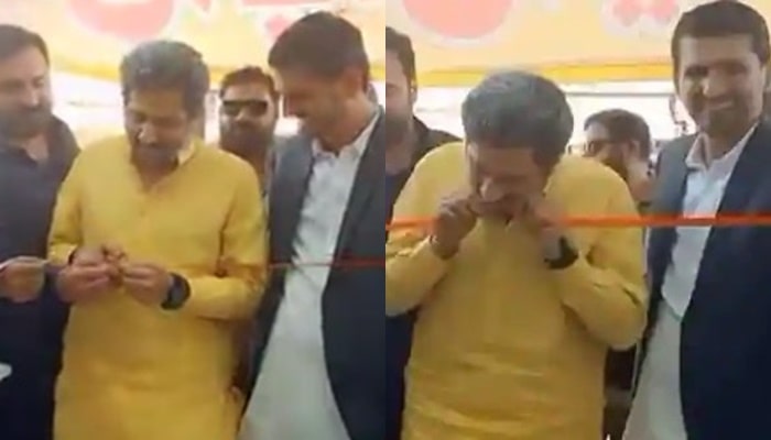 ਜਦੋਂ ਪਾਕਿਸਤਾਨ ਦੇ ਇੱਕ ਮੰਤਰੀ ਨੇ ਦੰਦਾਂ ਨਾਲ ਰਿਬਨ ਕੱਟ ਕੇ ਦੁਕਾਨ ਦਾ ਕੀਤਾ ਉਦਘਾਟਨ, ਵੀਡੀਓ ਵਾਇਰਲ